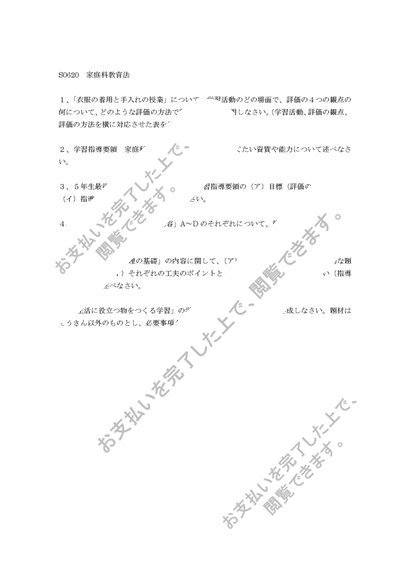 S0620 家庭科教育法 佛教大学 2015~2016年度 科目最終試験6題 2016~2017年度