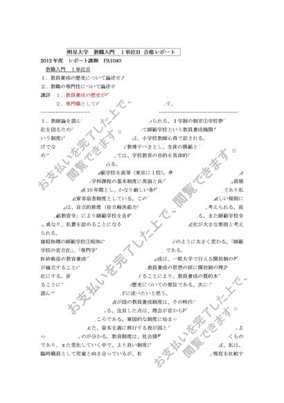 明星大学 教職入門 1単位目 合格レポート