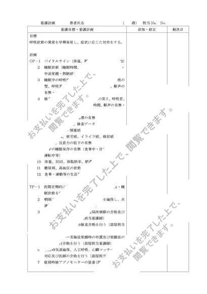 看護計画 睡眠時無呼吸症候群(SAS) 検査入院