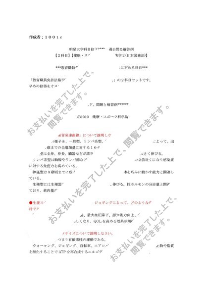 【2科目】【明星過去問&解答例】【法学2】【健康スポーツ・科学論】