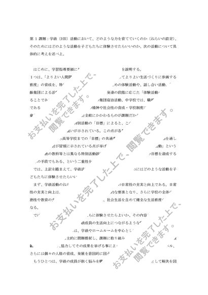 特別活動指導法 第1課題:学級(HR)活動において、どのような力を育てていくのか(ねらいの設定)、そのためにはどのような