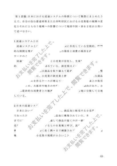 【2015年度合格リポート】Q0702 人文地理学 第1設題 A判定