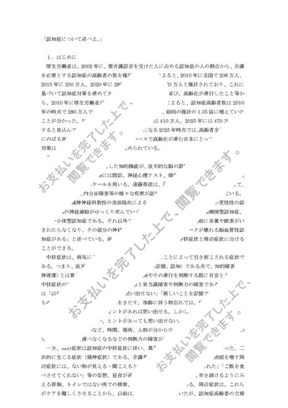 医学概論レポート&科目修了試験①~⑥セット(認知症について述べよ)