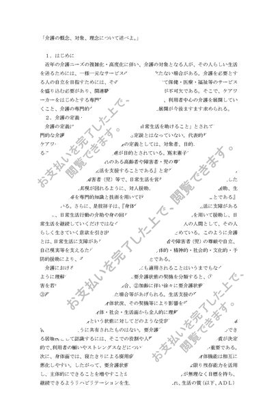 介護概論レポート&科目修了試験①~⑥セット(介護の概念、対象、理念について述べよ)