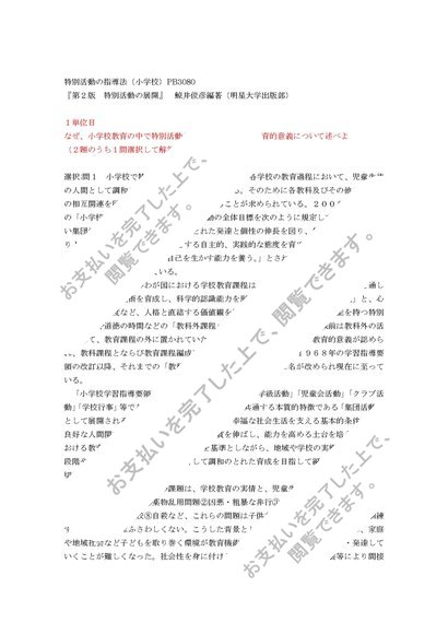 特別活動の指導法(小学校)PB3080(単位1)