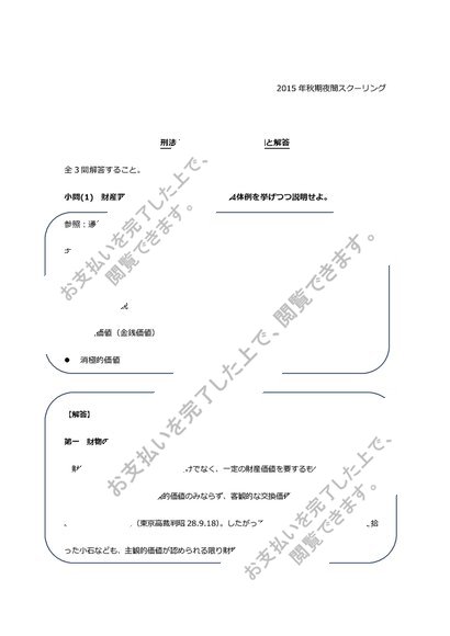 2015年日大通信教育部 秋期夜間スクーリング刑法II試験問題&解答