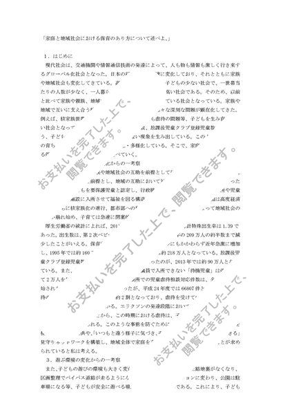 児童心理学【レポート設題1】(家庭と地域社会における保育のあり方について述べよ)