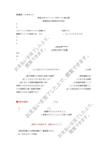 【2016明星スクーリング内試験過去問】【道徳教育の指導法(中学校)】