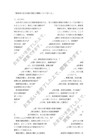 障害者福祉論レポート&科目修了試験①~⑥セット(障害者の自立支援の現状と課題について述べよ)