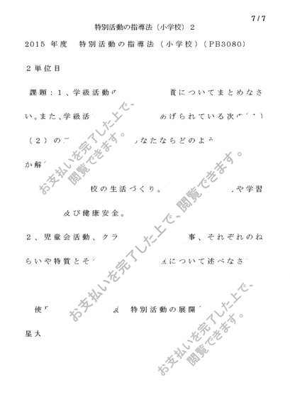 【PB3080】特別活動の指導法(小学校)2単位目