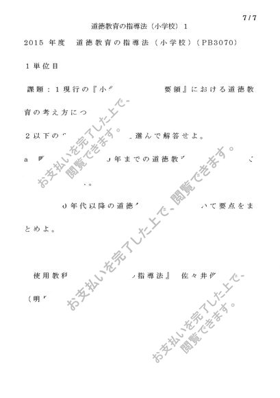 【PB3070】道徳教育の指導法(小学校)1単位目