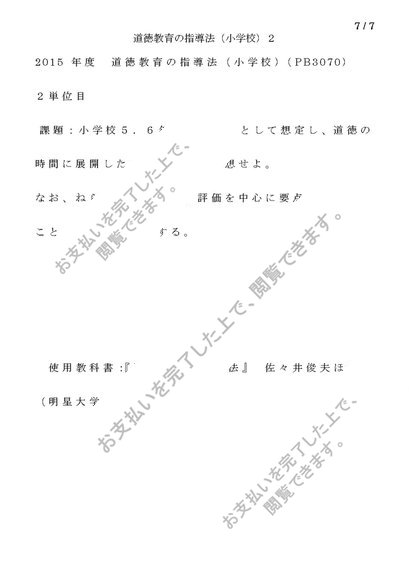 【PB3070】道徳教育の指導法(小学校)2単位目