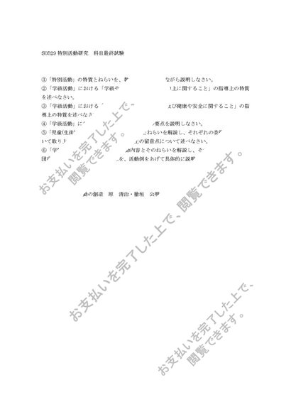S0529特別活動研究 科目最終試験6問 96点 2020-2021年最新版