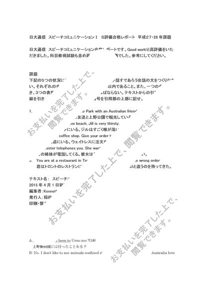 日大通信 スピーチコミュニケーション Ⅰ A評価合格レポート 平成27・28年課題