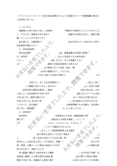 権利擁護と成年後見レポート&科目修了試験①~⑥セット:SWが成年後見活動を行う留意点について権利擁護の視点から述べよ