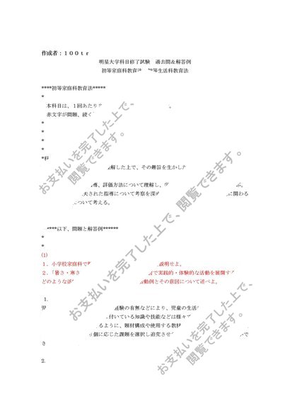 2科目【2016明星過去問&解答例】初等家庭科教育法、初等生活科教育法