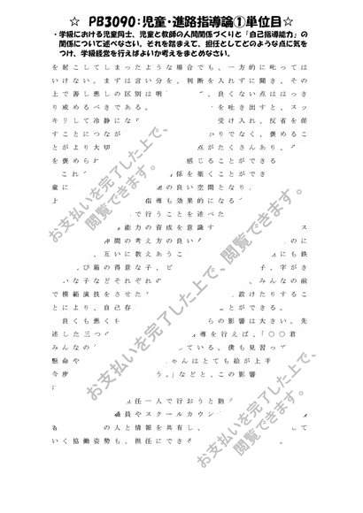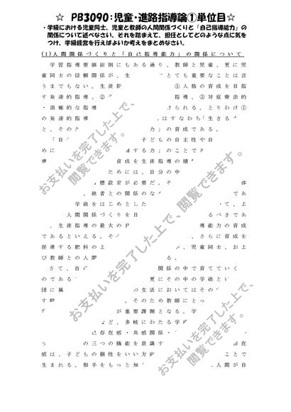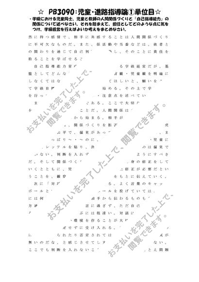 《明星大学通信》PB3090:児童・進路指導論 1単位目★2015年度 一発合格レポート