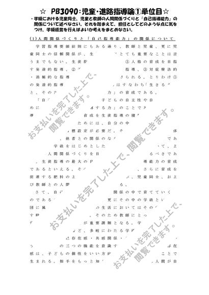 《明星大学通信》PB3090:児童・進路指導論 1単位目+2単位目★2015年度 一発合格レポートセット