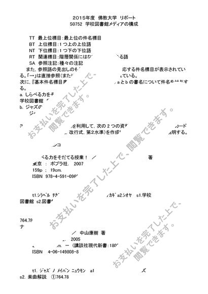 2015年度 リポート S0752 学校図書館メディアの構成 評点 A