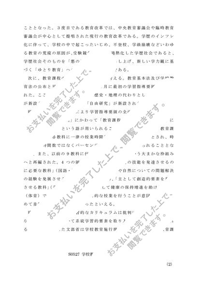 S0527 学校教育課程論 レポートA評価(合格済み)