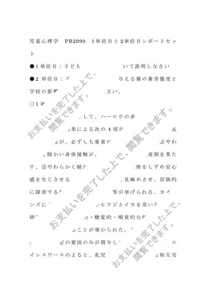 児童心理学 PB2090 1単位目と2単位目レポートセット 合格済