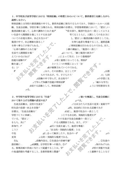 2016年度対応 Z1116 特別活動研究(中・高) 科目最終試験対策 6題セット 2016年合格済み