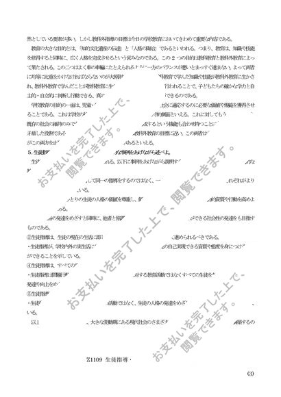 2016年度対応 Z1109 生徒指導・進路指導の研究(中・高) 科目最終試験対策6題セット 2015年合格済み
