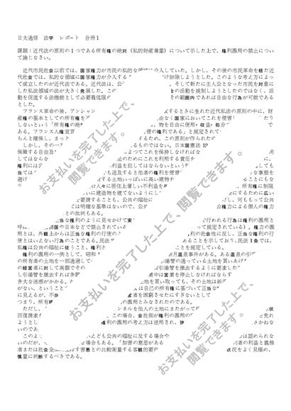 日大通信 法学 レポート 分冊1・2のセット A判定合格レポート[平成27-28年度課題]