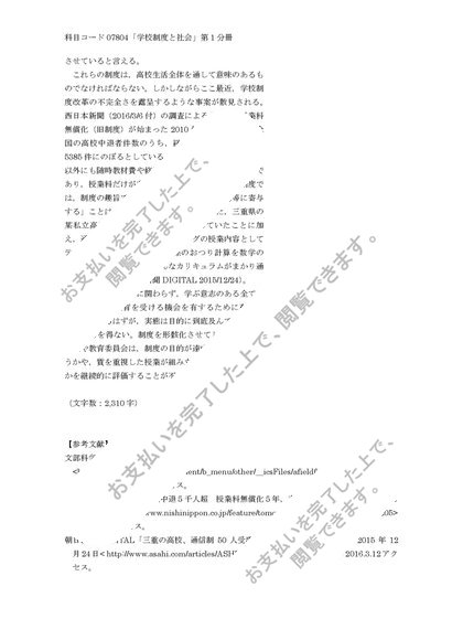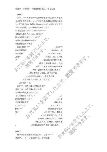 玉川大学 通信教育部「学校制度と社会」第1分冊 評価A