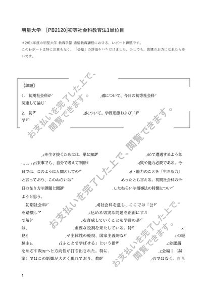 【2014年度】明星大学[PB2120]初等社会科教育法1単位目