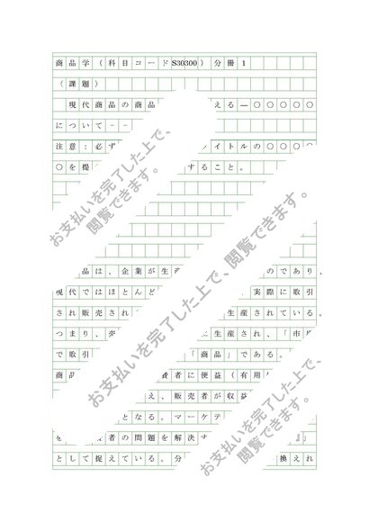 【日大通信】商品学(科目コードS30300)分冊1 合格リポート