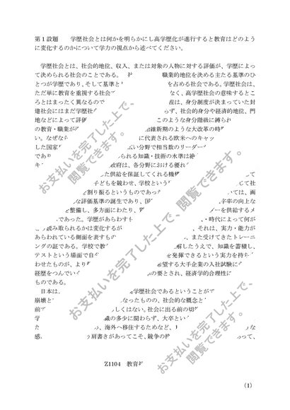Z1104 教育社会学 第一設題 レポート