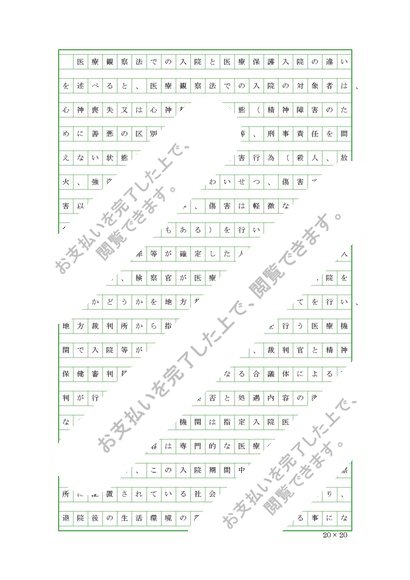 (9月②)精神保健福祉援助演習(専門)「事例Ⅲ-2(医療観察法での入院と「医療保護入院」の違いを調べ、発表してください。
