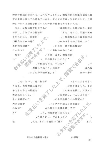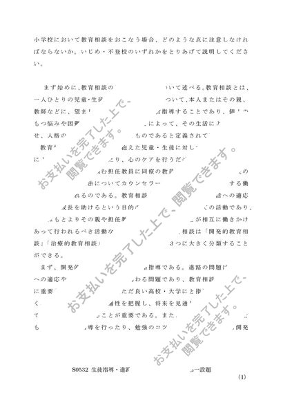 S0532 生徒指導・進路指導の研究(初等) レポートA評価