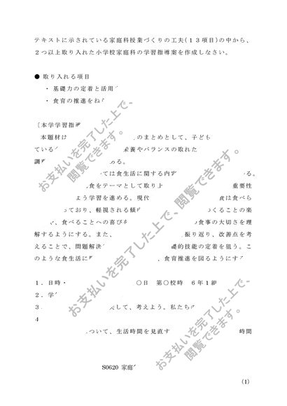 S0620 家庭科教育法 レポートA評価