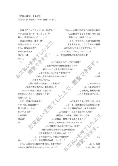 明星大学通信 PB2090『児童心理学』一発合格レポート 1、2単位目セット 2016年度