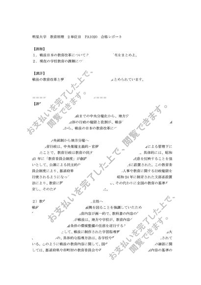 明星大学 教育原理2単位目(PA1020)合格レポート
