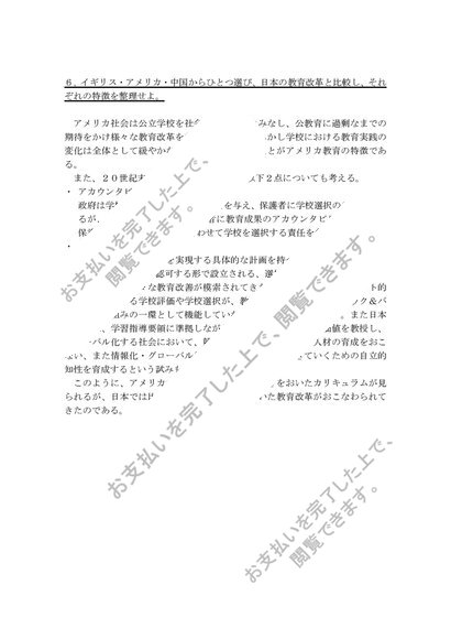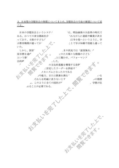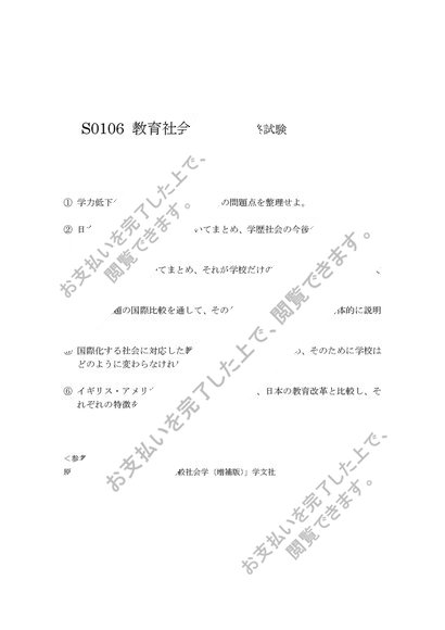 S0106教育社会学 科目最終試験6題セット(合格済み)