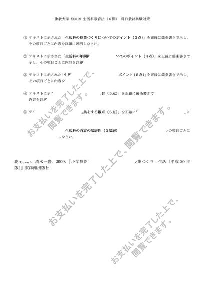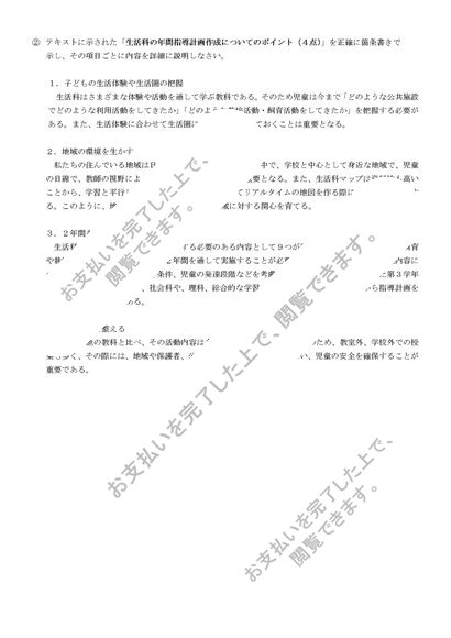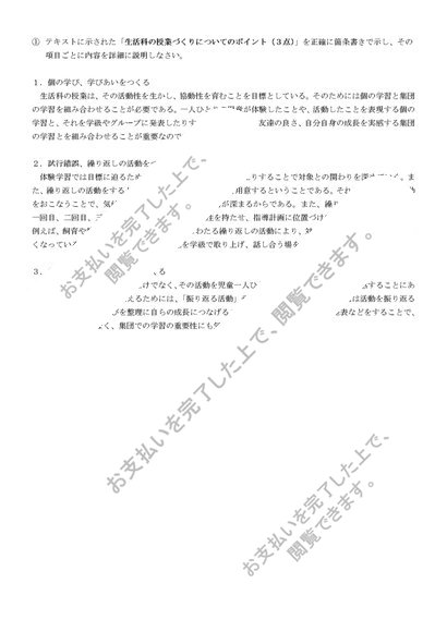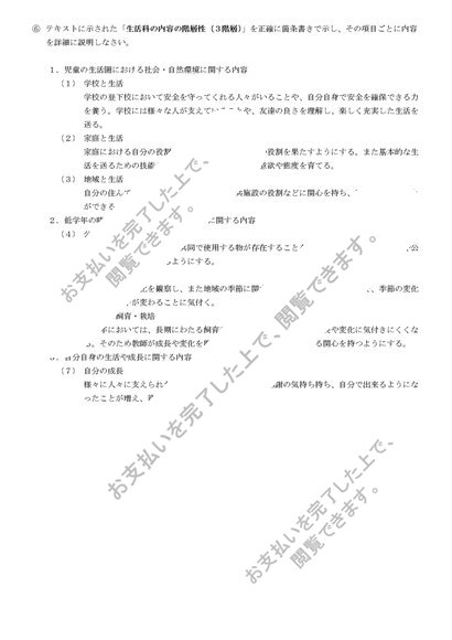S0619生活科教育法 科目最終試験6題セット(合格済み)