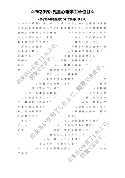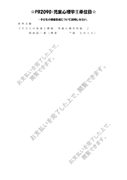 《明星大学通信》PB2090:児童心理学 1単位目★2016年度 一発合格レポート