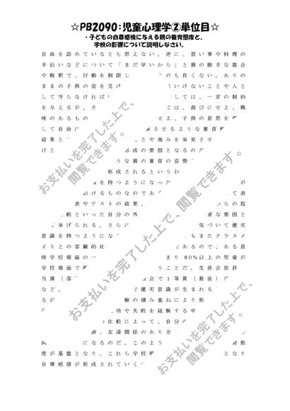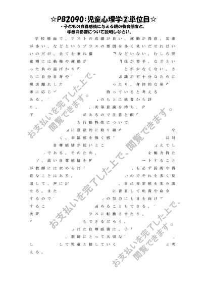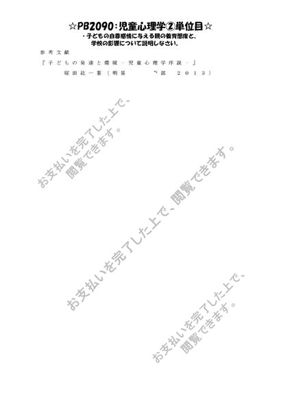 《明星大学通信》PB2090:児童心理学 2単位目★2016年度 一発合格レポート