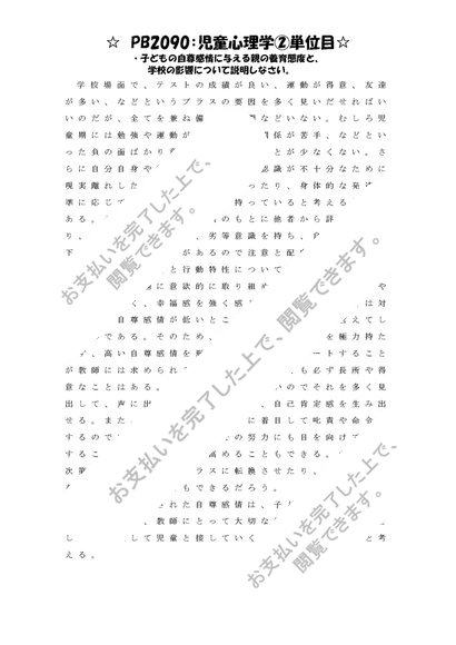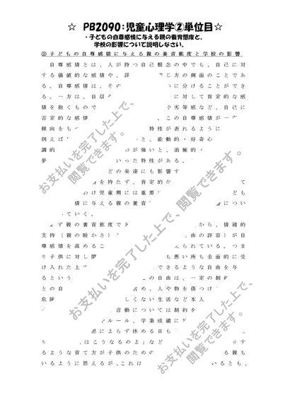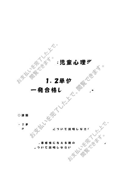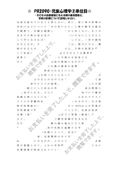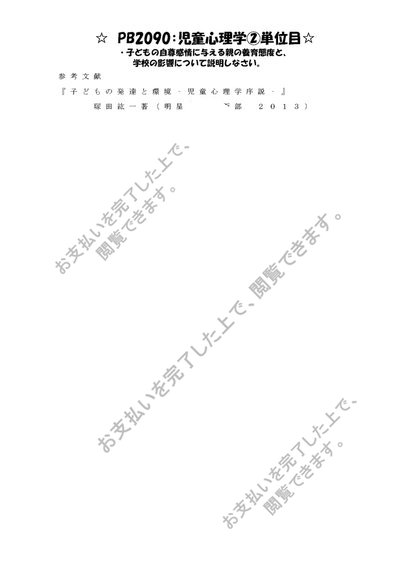 《明星大学通信》PB2090:児童心理学 1単位目+2単位目★2016年度 一発合格レポートセット