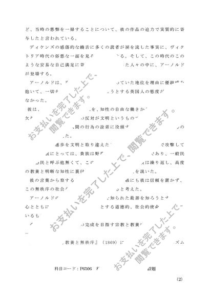 P6506 英米思想史 第2設題 A判定合格