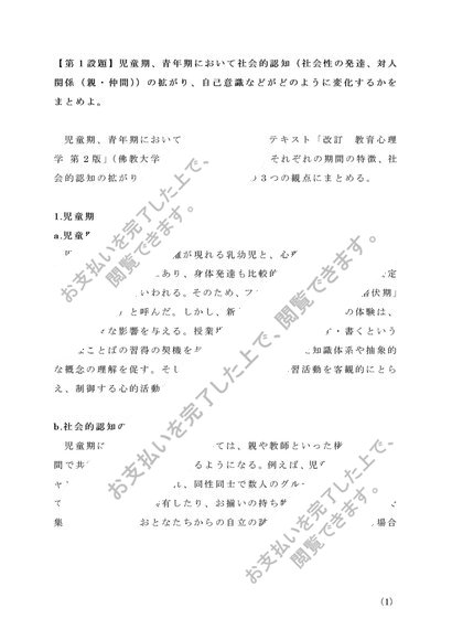 Z1103 教育心理学1(第1設題)合格レポート A判定