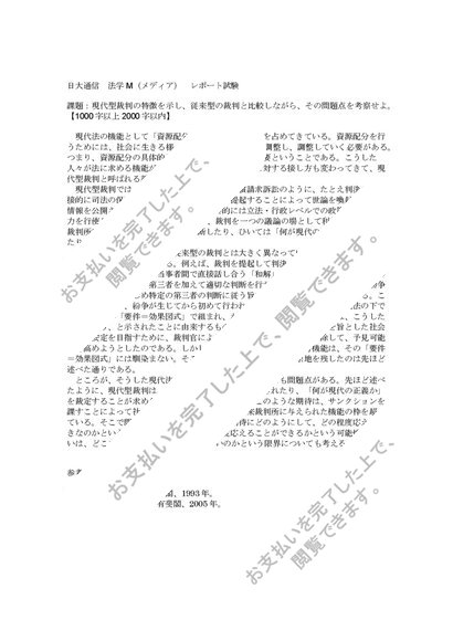 日大通信 法学M(メディア) レポート試験【A判定合格】