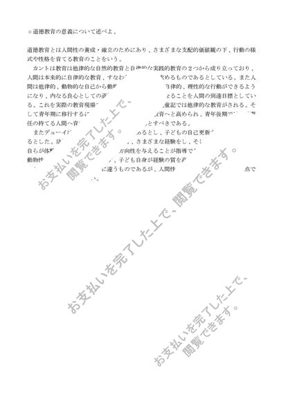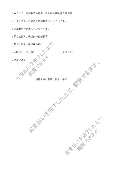 S0528 道徳教育の研究 科目最終試験6題セット(合格済み)