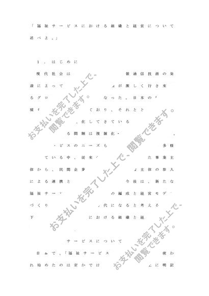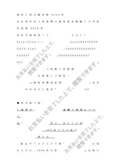 社会福祉運営管理論レポート&科目修了試験①~⑥セット(福祉サービスにおける組織と経営について述べよ)