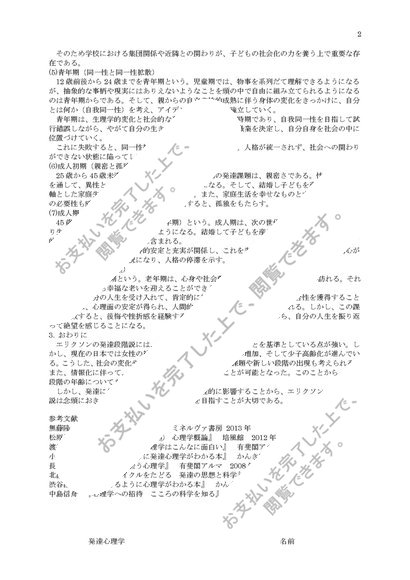 乳幼児から老年期に至るまでのライフステージのどれかを選んで発達的な特徴をまとめ、その段階に起こりがちな危機を1つ挙げて、