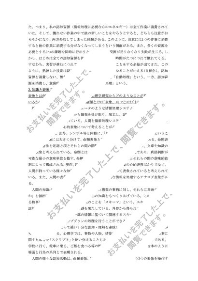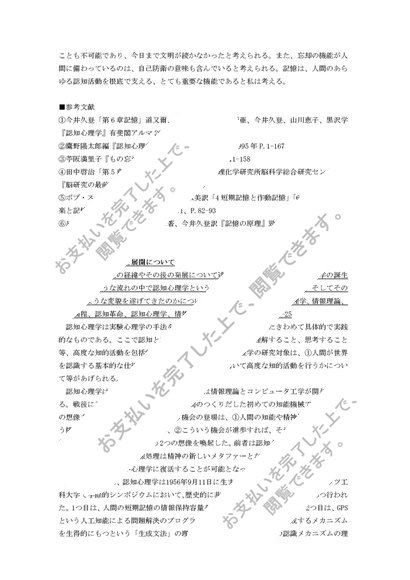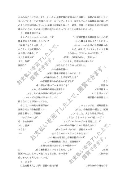 認知心理学レポート&科目修了試験①~⑥短期記憶、長期記憶、作動記憶という用語を用いて人間の記憶のしくみとその特徴について