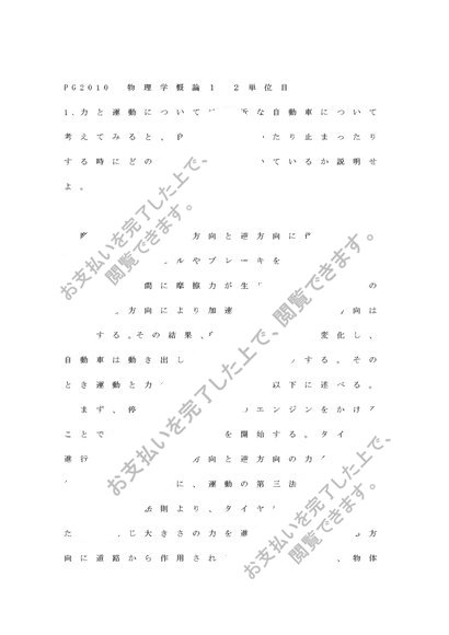2024 明星大学 PG2010 物理学概論1 2単位目 合格レポート